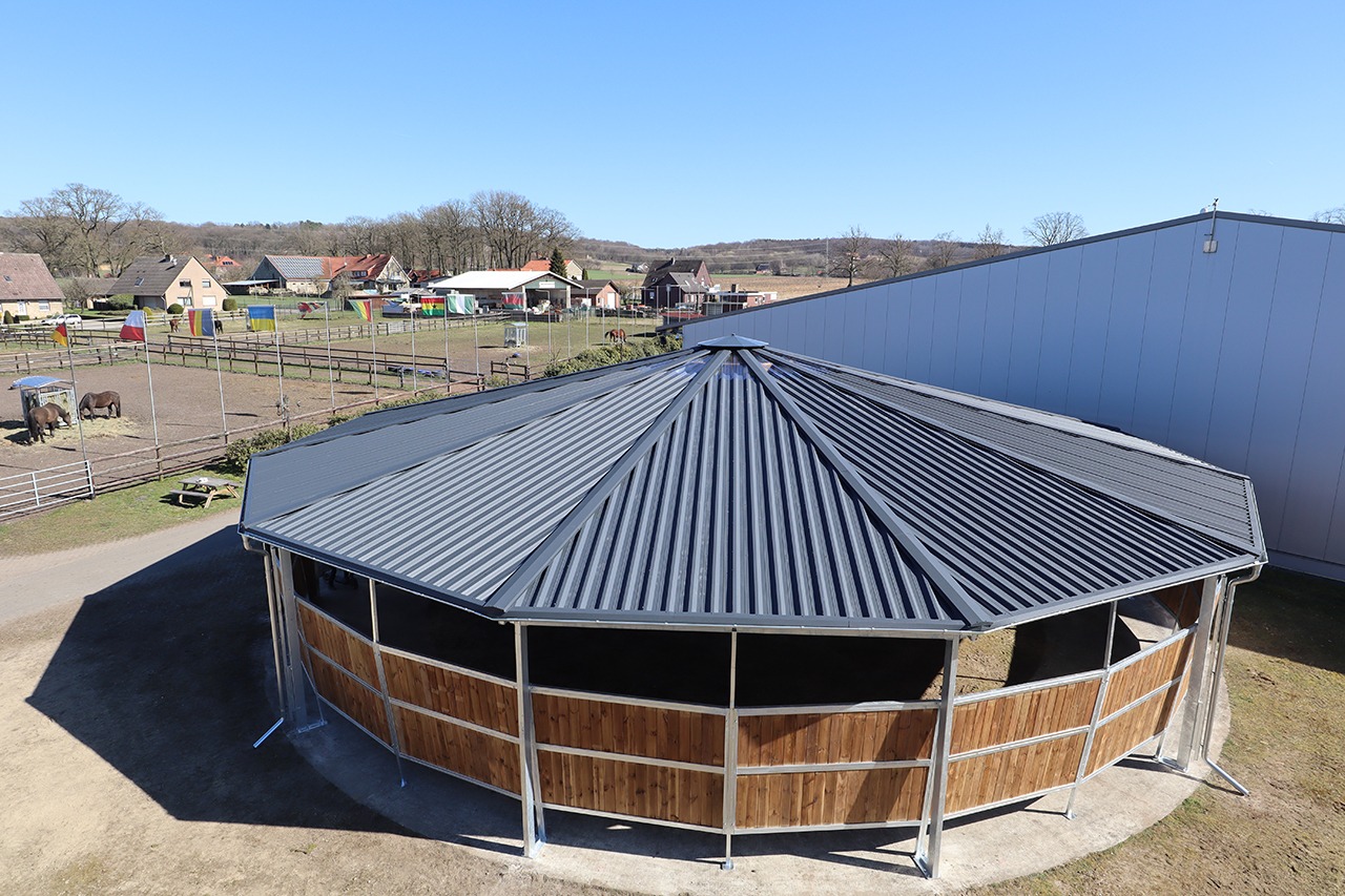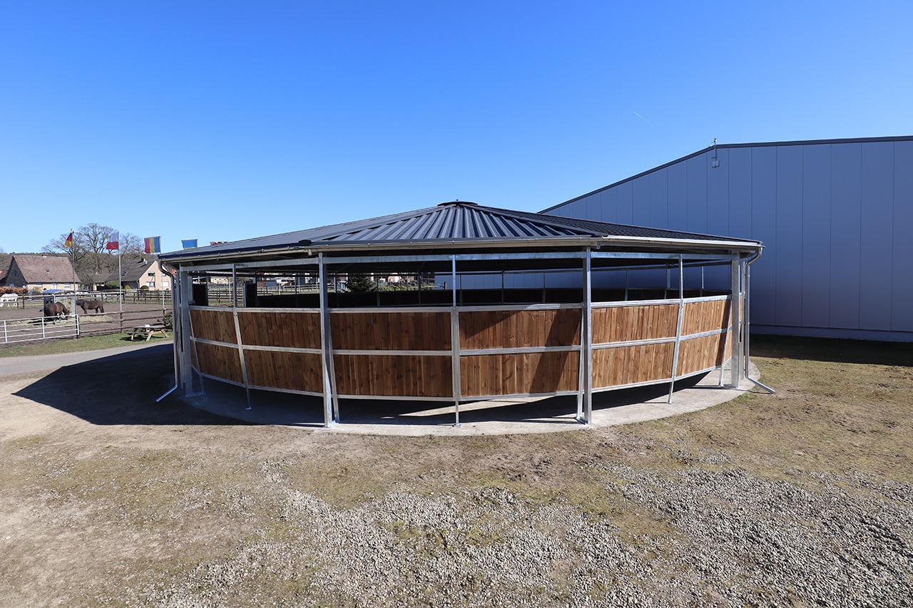 Die Tore für den Longierzirkel sind standardmäßig ca. 3,0 m breit und ca. 3,0 m hoch