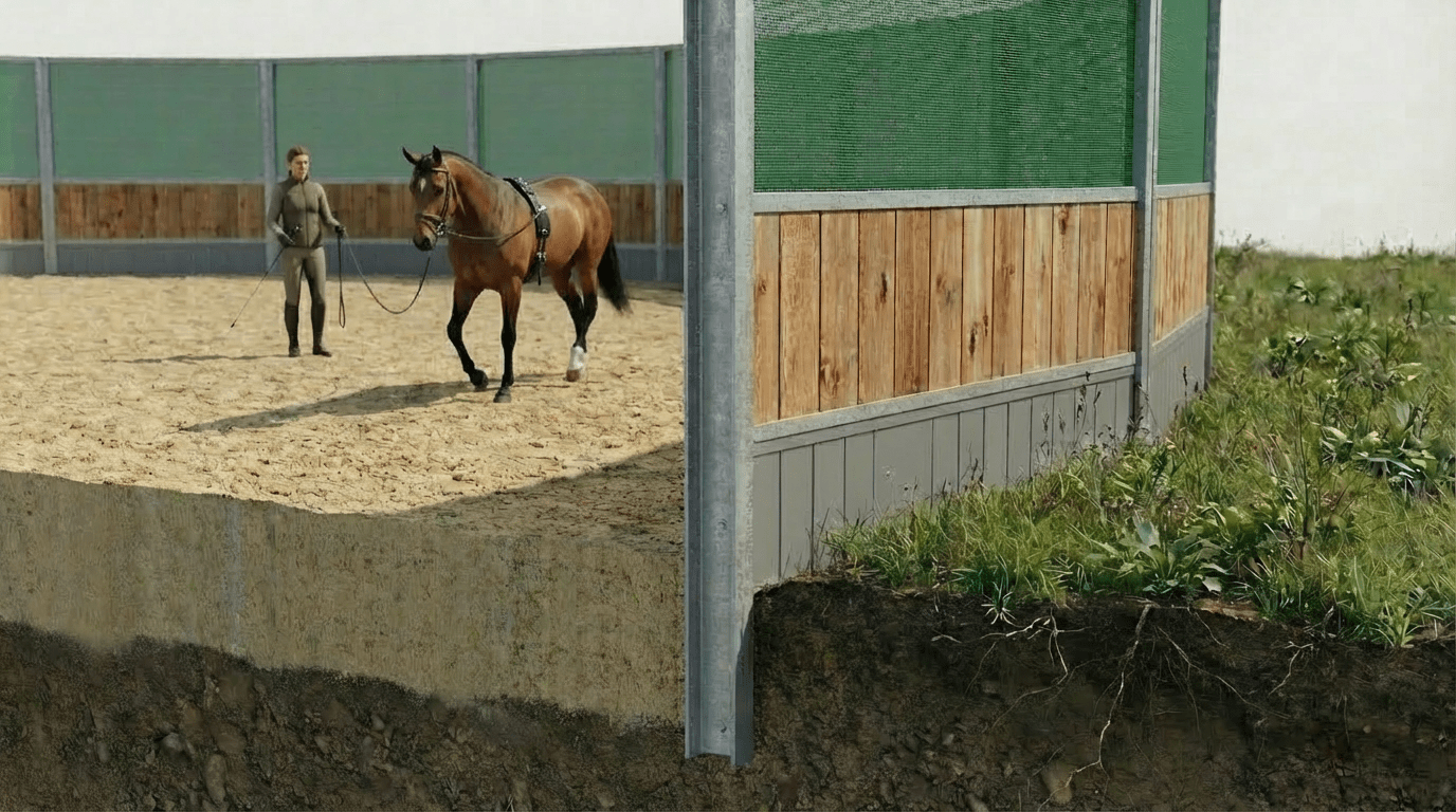 4 Varianten gerader oder schräger Banden zur Auswahl sowie eingegrabene Umrandung für den Longierzirkel